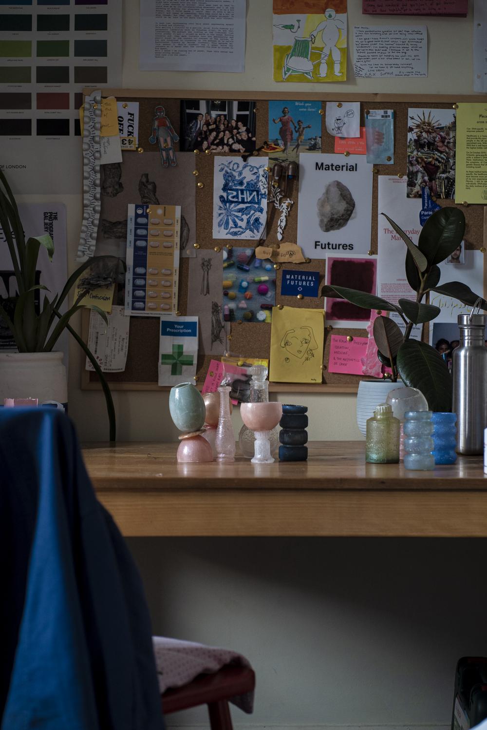 by crafting new and unfamiliar medical routines, such as taking prescription medicine, this project questions the societal and individual value placed on health and the systems that support it, as well as a reflection on the nature of medicine itself and its relationship to human ritual.this project was created while shielding in london during the first covid-19 lockdown.